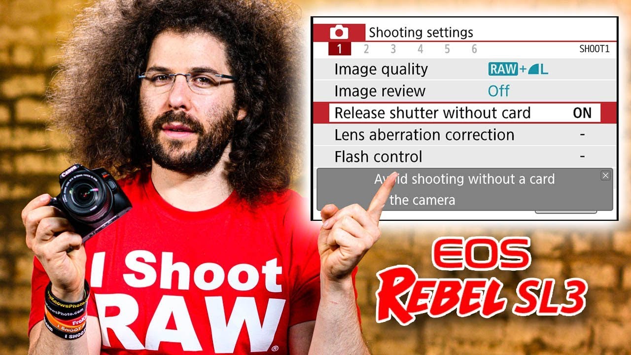 Right before we jump into this video, if you haven't signed up for the froknowsphoto email list, just look for this orange box over on the website. Put your name email address in it hit, send it and I will send you a free guide to capturing motion in low light situations, jarred Colin froknowsphoto. com, and this is a user guide for how to set up your brand-new Canon SL 3 camera. Now, if you just picked one up, congratulations on picking up this DSLR. If you're looking to purchase one well down in the links below, we have a link if you'd like to go, buy one at Drama or you can check out a 5-minute portrait which is 50 some minutes long, where I take this camera out into the real world and test it out. So in this video I'm going to start off by running through the outside of the camera, and then we're going to move into the menu system to show you how I personally would set it up if I was using it, but first, let's start with the outside of the camera.