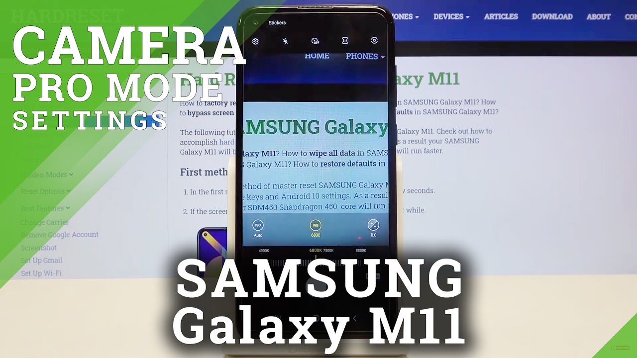 Welcome here I've got Samsung Galaxy m11, and I'm going to show you how to use the camera promote at this device. So at first we have to tap on the camera button here to open it and for now we are in the standard photo mode. Let's change it by using this settings bar and just simply going to the left to deeper. Here we are, this mode gives us possibilities to choose some shooting parameters by ourselves. This is useful when we want to learn photographic skills or making experiments with photography. So let me start with this settings bar.