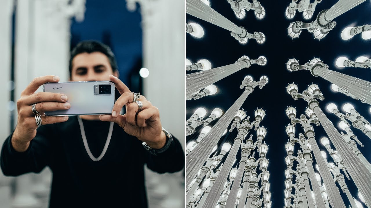 Everyone welcome to my channel all right guys, so we just got to LACMA, and we're going to be filming some scenes here and utilizing the v21 to see how it performs under low light conditions. Also, we just wanted to really check out this installation get some cool portraits of my buddy Simon here. The idea here is to really showcase the power of low light, shooting capabilities of the v21 and what better place to do it than here. Much love the spot. I love it.