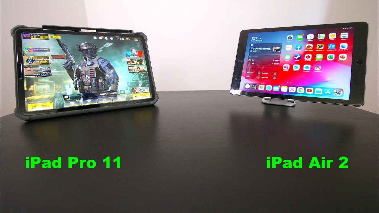 What's up guys now here hope everyone is doing well, given what is happening right now around the world David the past few weeks, I spent quite a lot of times on mobile gaming, especially Call of Duty mobile version on these two iPads to my left is the iPad Pro 11 inch 2080 model. Am I right is the iPad Air 2 air 2 is running about five and a half years old now, so it's still holding up pretty well. To my surprise, both iPads handle the game rate really well in their own ways. What I surprised most actually is this iPad Air 2 is 5 and 1/2 years old, iPad Air 2, even when recording the game and play the game at the same time, so the gameplay is pretty smooth right. First, let's talk about this iPad Air 2 now granted the quality or the setting. You can only go up to mid-medium in the graphics settings so because the limitation of hardware is the CPU and the graphics performance in this instance is the metal performance simply is showing its age a just bit too old, so the game and cannot take advantage of the hardware or hardware.