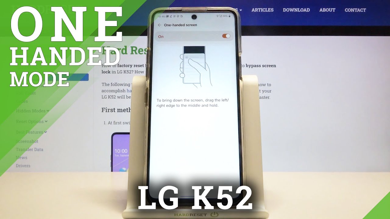 Welcome, if you want to enter one-handed mode in your lgk52 at the first, you have to go for the settings next tap on search, pool and type one. Let's go for the one-handed screen so right now, as you can see, we have to turn it on by tapping on the switcher and to turn on this mode. We have to swipe from the left or the right side and hold in the middle. So let's try. Okay, let's do it one more time and, as you can see, the one-handed mode is turned on. So that's how it looks.