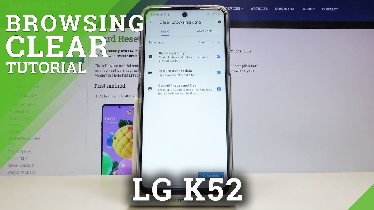 Hi everyone here we've got lgk52 and let me show you how to clear browsing data on this device. So, first we have to enter our browser. In my case it will be Google Chrome, so let's enter it, and now, let's tap on this three that I can at the list of previously visited websites if you'd like to remove only one of it just tap on this x button right next to it and as you can see, it immediately disappears. But if you'd like to clear much more advanced browsing data, just tap on clear roasting data right here and here- we've got some basic and advanced options in basics. We can remove browsing history, cookies and site data and cached images and files and after tapping on advanced, we can also remove saved passwords out of inform data and site settings. If you'd like to remove something, for example, saved passwords just make sure that the option will be marked.