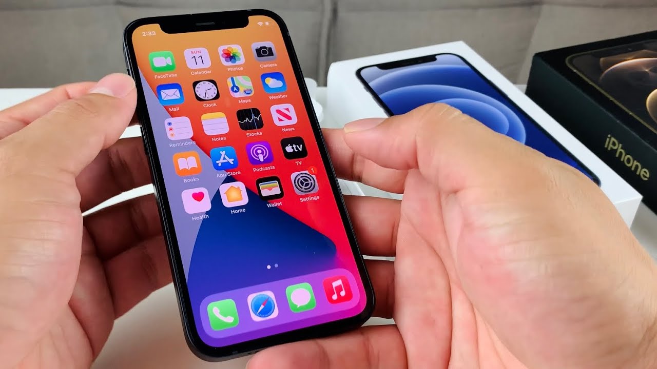 So if you guys can see here, 5g with a sub 60, GH z and mm wave technologies, probably the biggest thing that this phone brings up from the 12 11 the line-up here- and you notice here, the box here is really compact and other things to notice. This is here as you'll notice, the black edition of it with the two dual camera, and here it almost looks blue, but it's actually the black edition on it. It has shade of blue looking it's not. It doesn't look really black. Actually, this one looks more bluish or lighter color, but, as you can see the bezel here, it is a flat bezel.