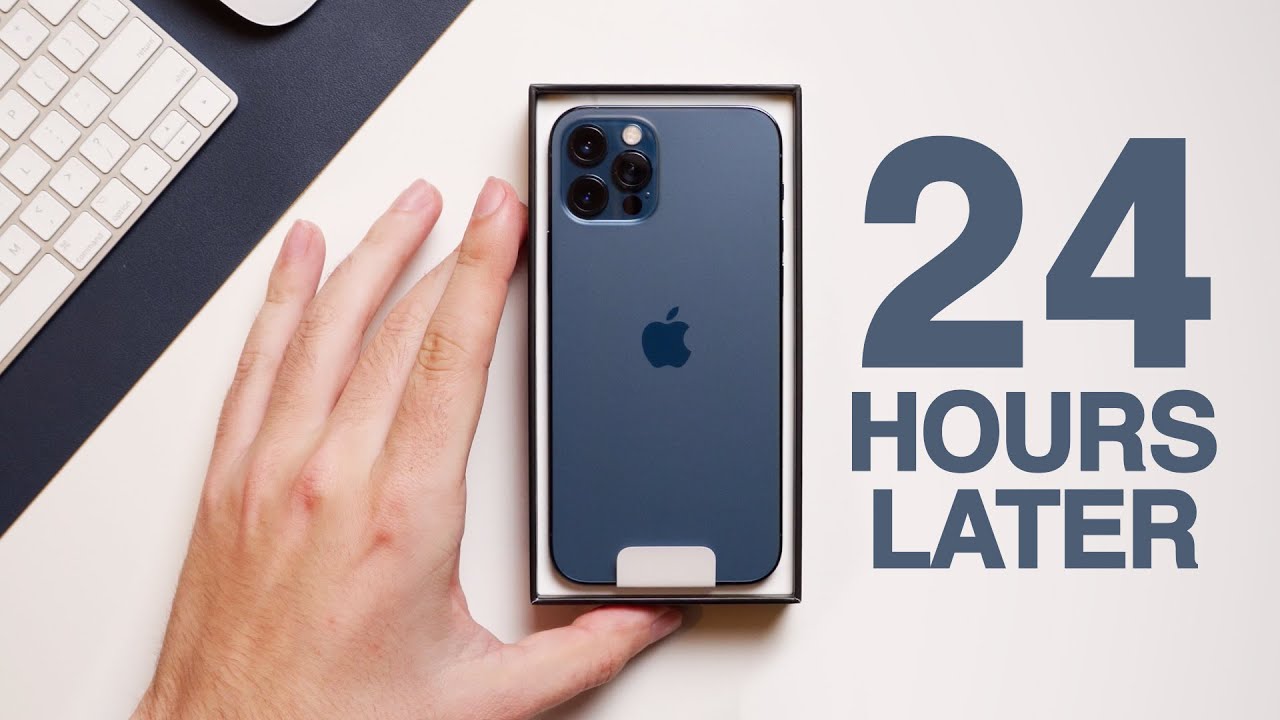 Hey guys mark here and after a little of trouble yesterday, I was finally able to get my hands on the iPhone 12 Pro that I pre-ordered no regular iPhone 12. Yet, unfortunately, but at least I do have this one to do some coverage, I've had it for about 24 hours now, and I've got some thoughts and first impressions to share with you guys. So the pro model I ordered is the pacific blue version, and I have to say I do love the new color, keep in mind that it isn't nearly as bright or as saturated as it is in the photos, though, in fact, if you're in some dim lighting conditions, it doesn't even really look blue, it's more like a gray. The back glass has a matte finish for fighting the good fight against those fingerprints, but the side rails of the pro model definitely do not. These are stainless steel, and they're extremely glossy, unless you're wearing gloves all the time. These side rails are going to be very dirty constantly speaking of the side rails, as I'm sure you've noticed by now, Apple has gone with a flat design this year.