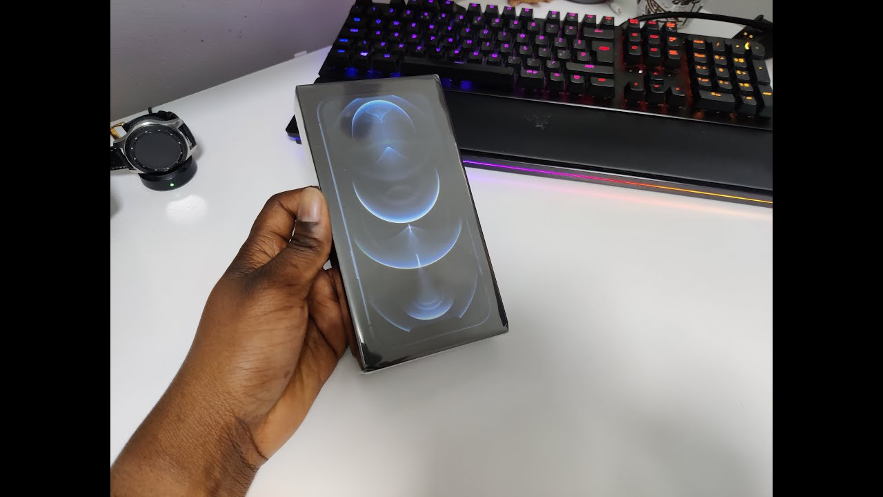 Overworking here and in this video I'm going to be unboxing, the Apple iPhone 12 Pro max uh pick this up I'll basically do for an upgrade. So I decided to try iPhone for a bit pick up and see how it is, and you can see the box they've actually made the box a lot of spin there as well. If you can see the iPhone 12 max, this is the um 512 gigabytes you see. Basically, this doesn't include the charger, and it saves like um weight, shipping costs and more environmentally friendly and all that kind of cool jazz. So yeah, I'm just going to open up. We've got a little tab here, oh slides off this slide's off, so I did get in blue wow, wow that looks perfect in terms of packaging.