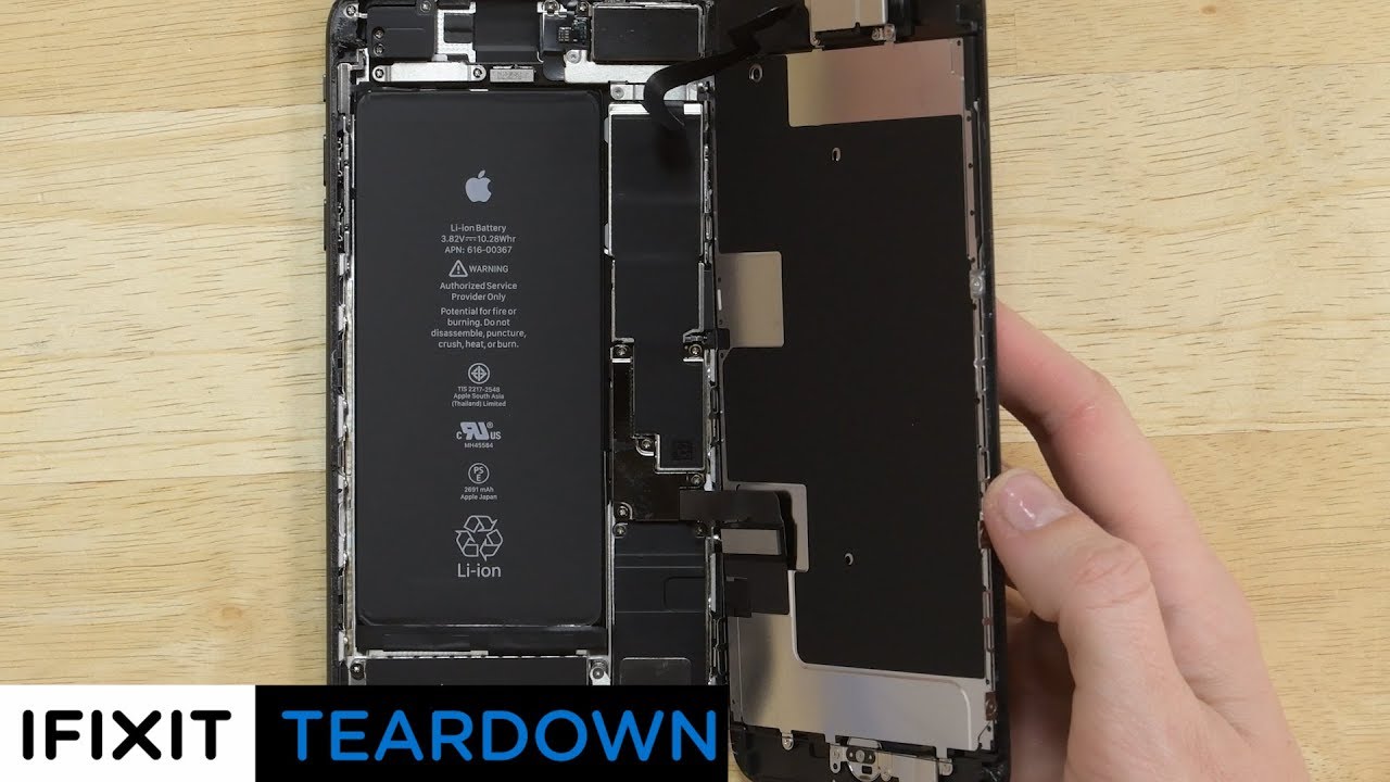 Going to have to deal with those later on. The display on the iPhone.8 plus has the same resolution in pixel density as the iPhone 7 plus, but the 8 plus now has true tone technology, which makes it easier for you to read. What's on your screen in bright, sunlight, the true tone technology works at the ambient light sensors in the 8 to detect the color temperature of the lighting around you and then changes the color temperature of the display to match. Apple's website literally says that the charging capacity of the iPhone 8 plus battery is about the same as the iPhone 7 plus. But what we're really excited about are these four pull-tab adhesive strips that should help you easily remove the battery if and when you need to replace it.