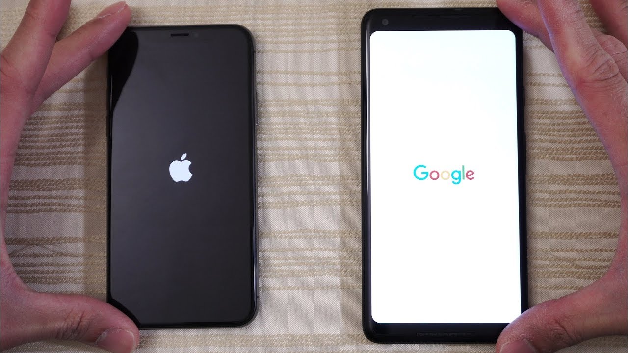 So, this will be a speed test between these two. We have the iPhone 10 or the iPhone X versus the Google Pixel to excel. We turn on both at the same time and see which one has the faster Buddha: let's go: Google versus Apple and oh the pixel to excel boots up faster than the iPhone 10 Wow. This phone boots up hello fast, and we are- is there's nothing in the background. So let's get started with the messaging app, and I'm going to call that a tie, camera and another tie calculator and tie again no winners yet open the clock. Another tie, Wow Play Store and the App Store respectively and oh I, don't know I'm going to open this over app, and I'm gonna search for it on the App, Store, and I'll just leave it there open eBay and give this one to the pixel to excel click on this jacket, and I'll leave it there, Amazon XL to XL again well, click on this deal of the day, and I'll just leave it.