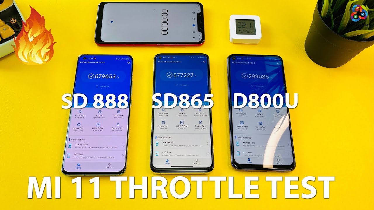 Hi guys it's Frankie from Frankie tech good to see you guys again, and I'm here to share my an tutu throttling test between the Xiaomi mi 11, the mi 10 t-pro, and I have here the note 90, and each of these phones represents a different chipset as well: the snapdragon 888 h65 and the density 800u, which has been a terrific performer in these throttling tests. So if you haven't seen one of these before, basically I'm going to be running the an tutu benchmark on these phones, not once not twice but six times in one hour, and the goal of this test is to really see. Do these phones number one overheat but number two? How much do they actually lower their score after six intense an tutu benchmarks in a row? So let's not waste any time and let's have a look? Okay guys. So I've switched over to HD recording for this video, and here you see I'll, be running the an tutu benchmark. I will also have the CPU monitor in the background measuring the CPU temperatures of these phones, but I've also purchased a brand-new thermometer for these tests. Measuring the exterior temperatures of these phones- and you see all the phones are 100 battery life, so we'll also get to see how much these phones drain after running an tutu for one hour.