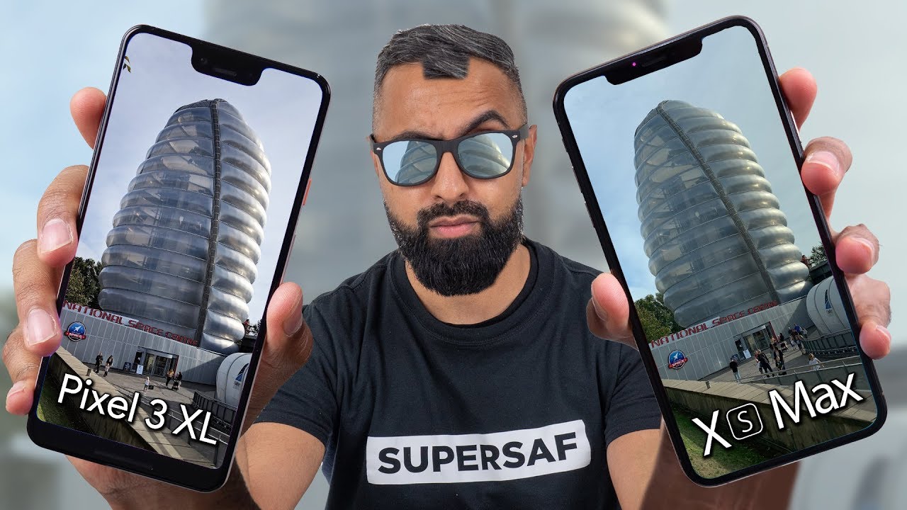 - What's up guys, Saf here, on SuperSaf TV and welcome to another SuperSaf style camera comparison. This time between the Google Pixel 3 XL and the iPhone XS Max, so you guys know the drill. We'll be checking out all of the aspects of the cameras front facing, rear facing, videos, images and we'll also be checking out the audio. So look out for the audio icon in the corner of the screen. And I will indicate to you which device the audio is coming from. We'll be switching between these two throughout this video as well, to give you guys a good idea of the differences in audio.