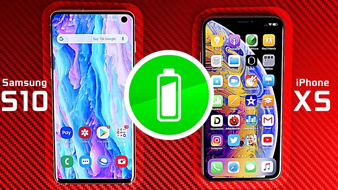 What's up folks how's it going this watch hope you guys are all doing well, and today we're going to be doing a battery life comparison with the new Samsung Galaxy s10 and the standard iPhone 10s we're going to be putting these two smartphones through three different specific tests to determine how they compare against each other in terms of general battery performance and which one comes out on top in terms of battery life. So, let's get right into it now. Firstly, in terms of battery capacity coming from the previous generation Samsung s9 that had around three 000 William capacity, we now have 3 400 William hours now, even though the s10 has the larger battery, we still have to keep in mind that we have a larger brighter higher resolution display. That's certainly going to be a little more of a power draw compared to the s9 and compared to the iPhone at 10 s. That only has a 2659 William hour battery. We should expect to see uh, certainly better battery performance on the s10.