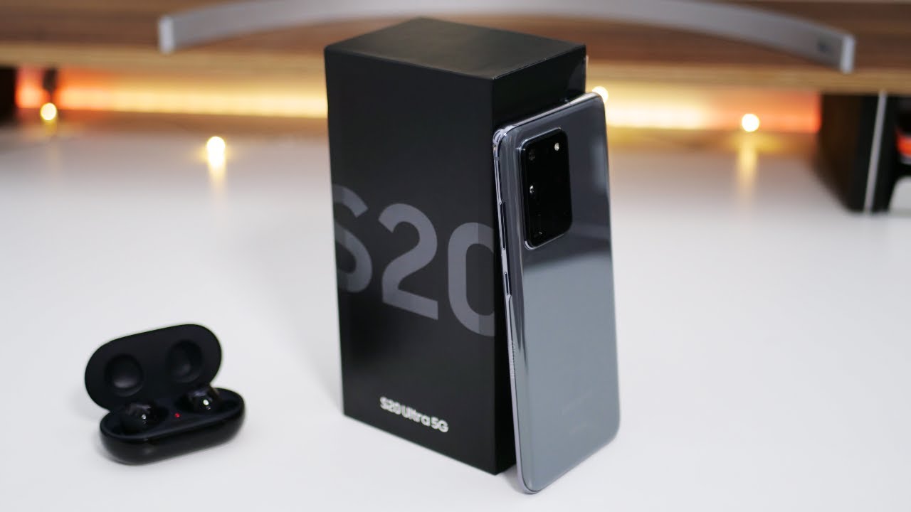 Hi everyone Aaron here for ZolloTech- and this is the Samsung Galaxy S 20 Ultra 5g, and this is a pretty expensive phone. It comes in at one thousand three hundred and ninety-nine dollars for 128 gigabytes of storage and one thousand five hundred and ninety-nine dollars for 512 gigabytes of storage. It only comes in two different colors: it comes in a cosmic gray and a cosmic black, and this is the cosmic gray. Color I also got the Samsung Galaxy Buds plus for free, along with this LED back cover, we'll take a look at later in the video. So let's go ahead and open this up, and we'll talk about the specs and everything else. So let's go ahead and cut the tape on the back here there we go set that aside and let's unbox this the tops pretty loose and inside here it looks like we've got our typical Samsung box set up.