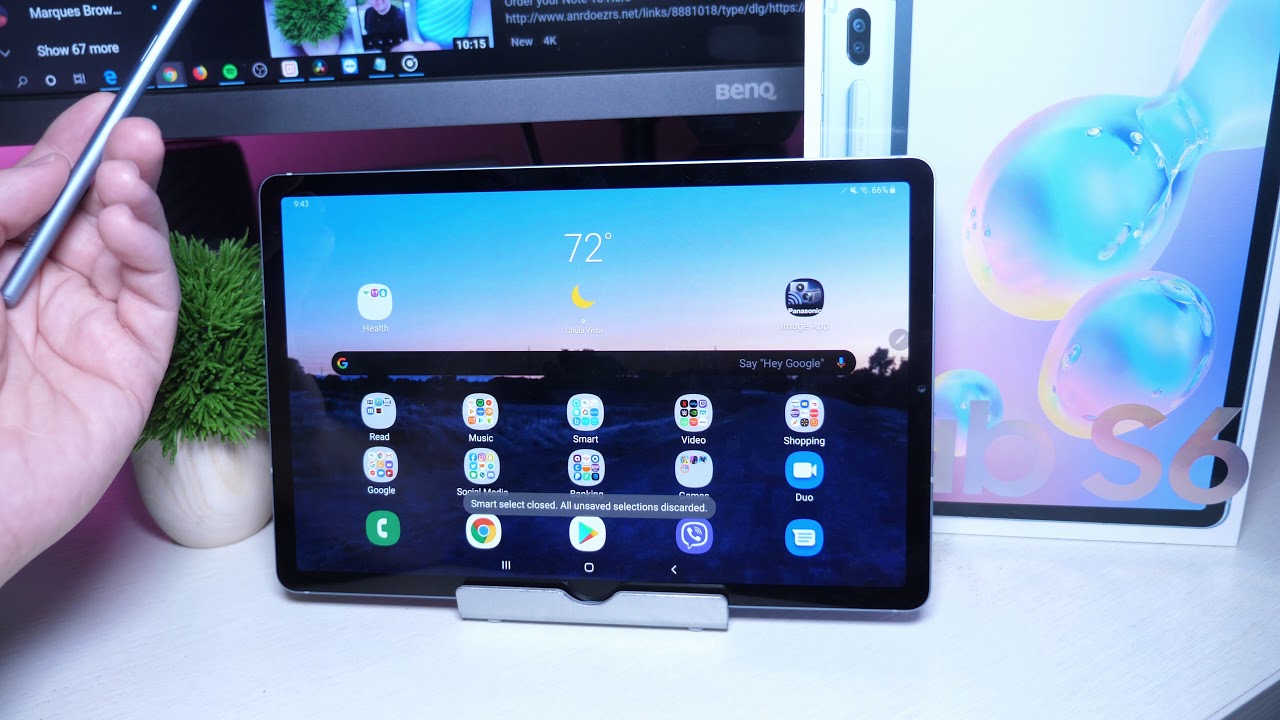 What is going on guys Greg Miles, the Samsung Galaxy Tab s, 6, and I've been waiting for this for a while, because my son has my Galaxy Tab s, 4 I bought it for myself, but then my slow son took it over, and he watches all his YouTube videos on it. At this point, and this tablet I just came out its up, for it still says it's up for pre-order on Samsung's website, I'll link it down below. If you want to pick it up, and we're going to go through this I'll unbox, it gives you my first impressions, but you can say a basically only thing it says here on the box. Is package contains Samsung Galaxy, Tab s, 6 10.5, inches 256, gigabyte, S, Pen wall, /, USB charger, Quick, Start, Guide and Samsung Terms & Conditions, but we're still going to open it up. Let's check it out, ok! So, let's pop this open got the Galaxy Tab s 6 right here, then we have the charger. This is the S Pen that comes with the Galaxy Tab Essex, a lot larger than the one that comes with the note 10.