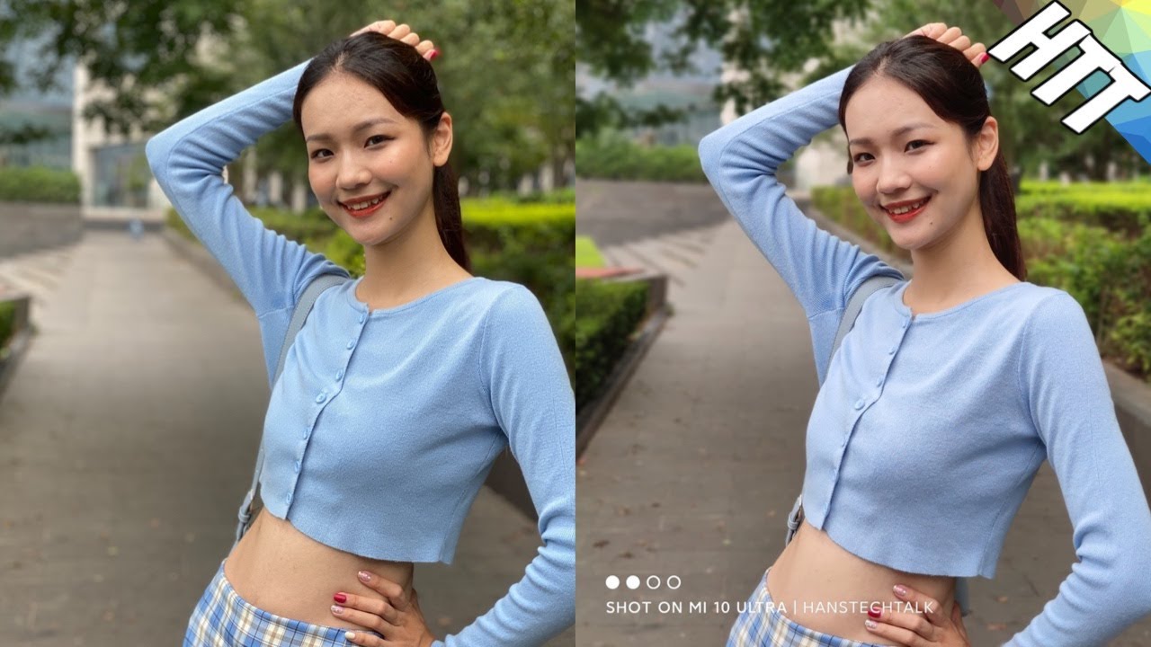 Correct skin, smoothing beauty effect of Xiaomi mi 10 ultra makes things a bit soft, but look at that hair color and I can see true to life, color tone and more textures on the image produced by mitten ultra at a glance, it looks pretty similar, but let me crop in now. Can you see the difference in terms of both effect? Both did very good creamy both without insane background separation. Both did very well wait. Don't just get very happy. Xiaomi meets an ultra portrait mode performance in low light is awful, and it gets crushed by iPhone 11 Pro time for ultra-wide lens daytime pictures, and it's no surprise, but both of these two smartphones can take excellent photos during the day, and I don't think there is a huge or drastic difference between these two.